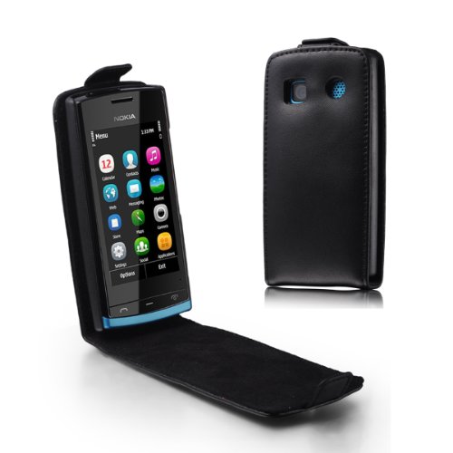 MaryCom PREMIUM QUALITÄT Leder Handytasche schwarz für Nokia 500 Smartphone + gratis Displayschutzfolie Kaufen bis Heute: