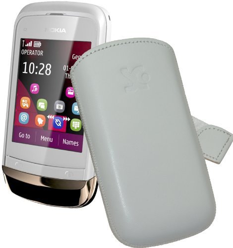 - Lieferumfang: Suncase Ledertasche (Lasche mit Rückzugfunktion) für Nokia C2-02 Touch / Type weiß