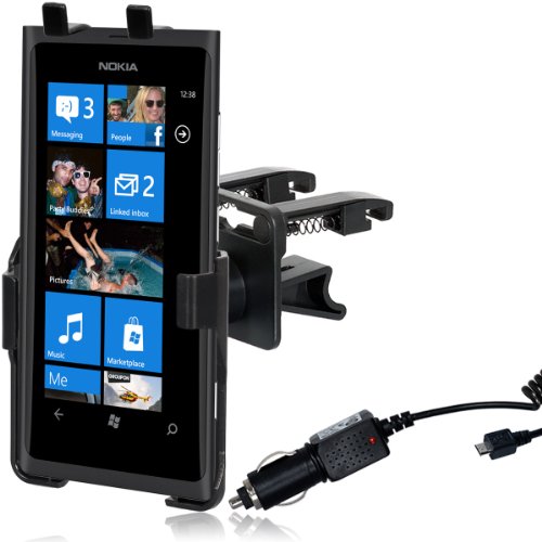 Wicked Chili Autohalterung für Nokia Lumia 800 Smartphone - Halter für die Lüftung - KFZ Lüfter-Halterung + KFZ Ladekabel (1000mAh, 12V, 24V) schwarz Kaufen Heute für Besten Preis